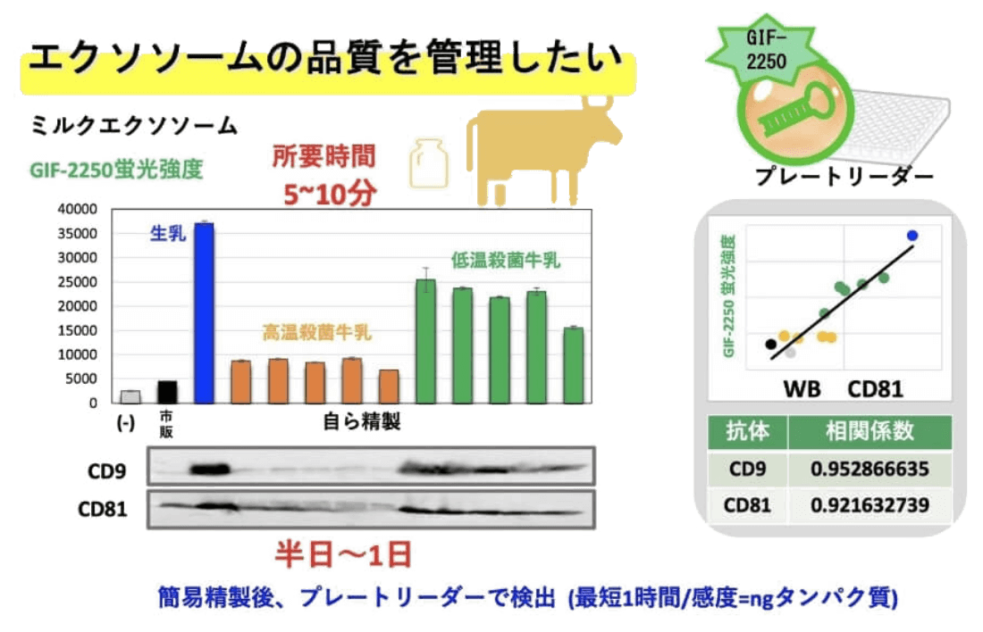 (株)GIFU EXOSOMEでは、マーカー未同定の生物種でもエクソソーム・EVを測定できます。「エクソソーム○○mg配合」と表示できるよう、岐阜発の公の規格構築を目指します!!